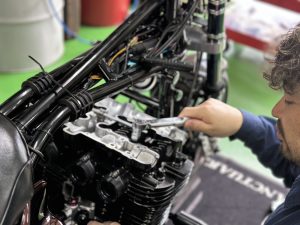店長エンジン組立てに集中((+_+))~ ”近寄るなオーラ” がプンプン漂ってます。