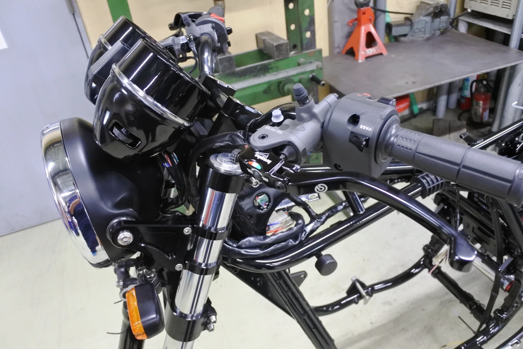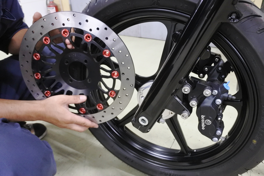 既にブラックアルマイト処理されたBremboキャリパ-は装備済みですが