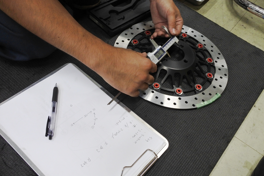 ディスクローターとキャリパーのオフセットを整合させるパーツ製作が必要で