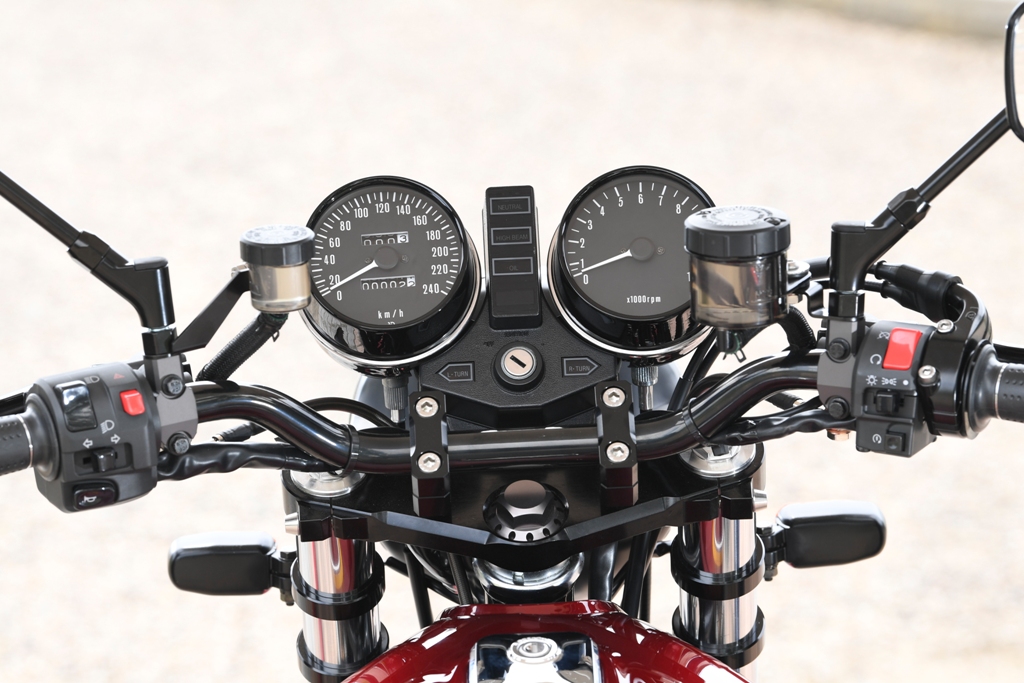 メーターはカワサキ純正品をベースに専門業者さんにてリビルドされたもの。