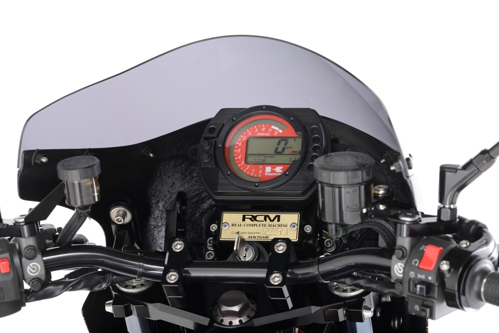 メーターは水冷Z1000純正を流用したデジタルオールインワンメーターで