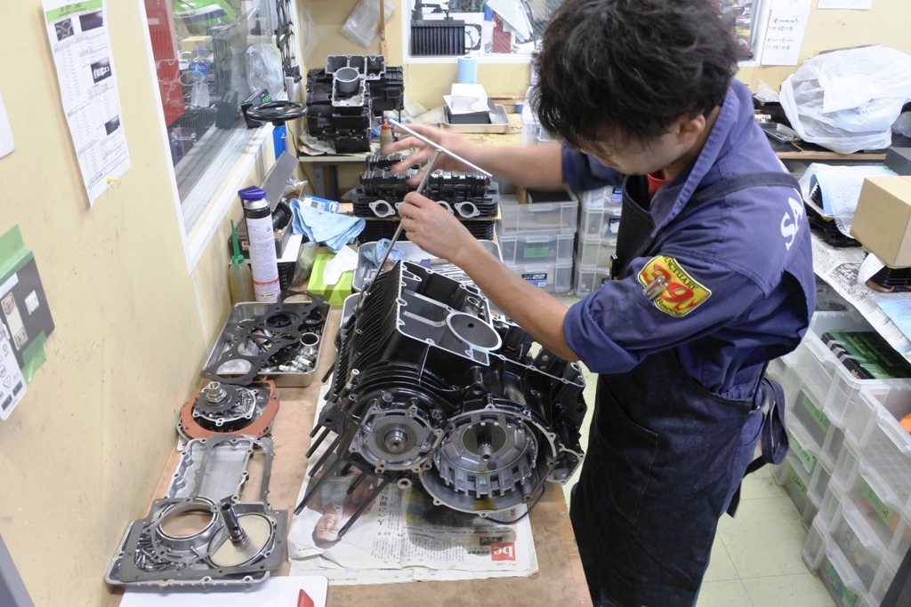 新保氏は普段、ストリートバイク用サスのオーバーホール業務を生業としているが
