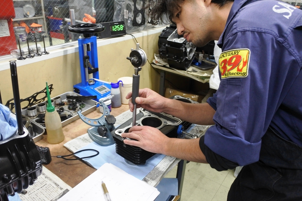 予選3日前、最後のエンジンチェックを行うべく全分解された3号機のエンジン。