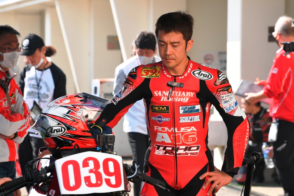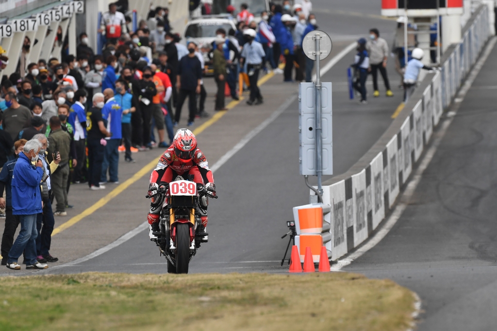 分刻みの滑り込みで出走許可を得た國川浩道は、今ピットロードからコースへ。