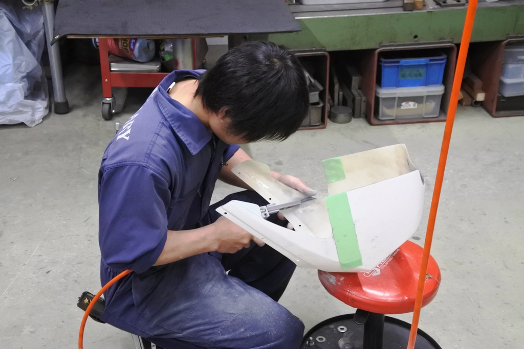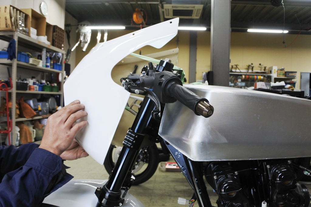 カウル側も若干カットしつつ アッパーカウルの固定位置を決めて行くんです。