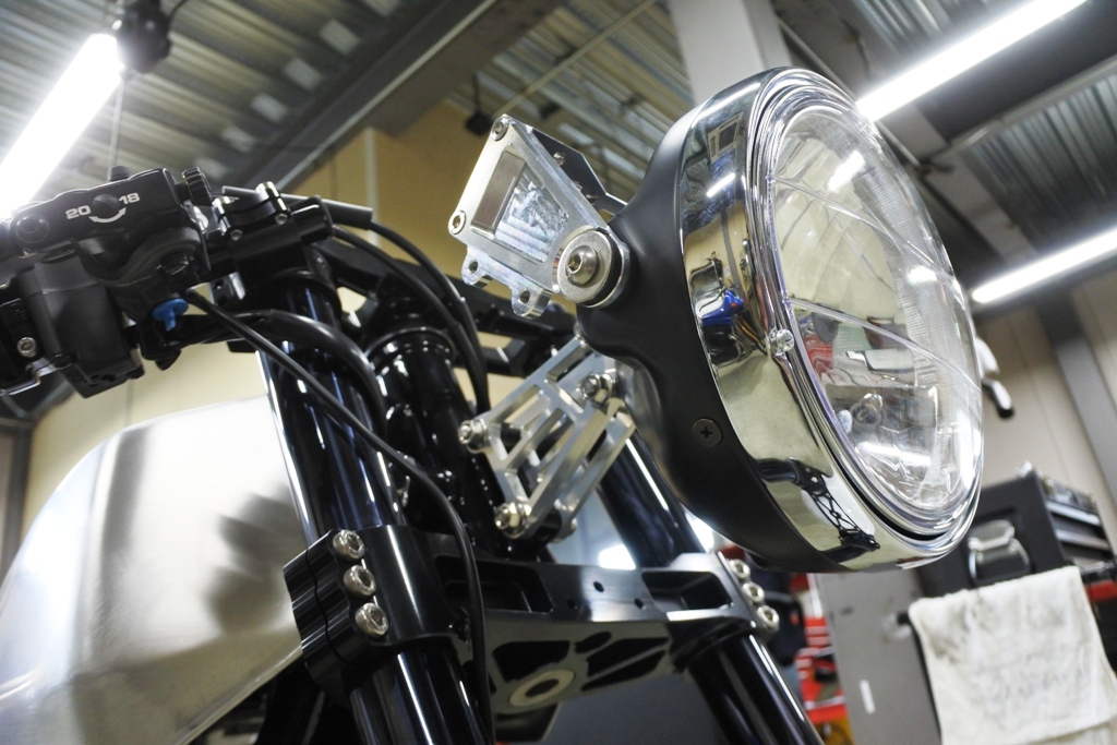 ヘッドライトの固定はラバーマウントで、Z1-R特有のノーマルライトリムが