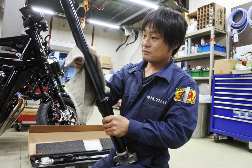 状態が良いので わかりにくいですが OHLINS製フロントフォークも中古。