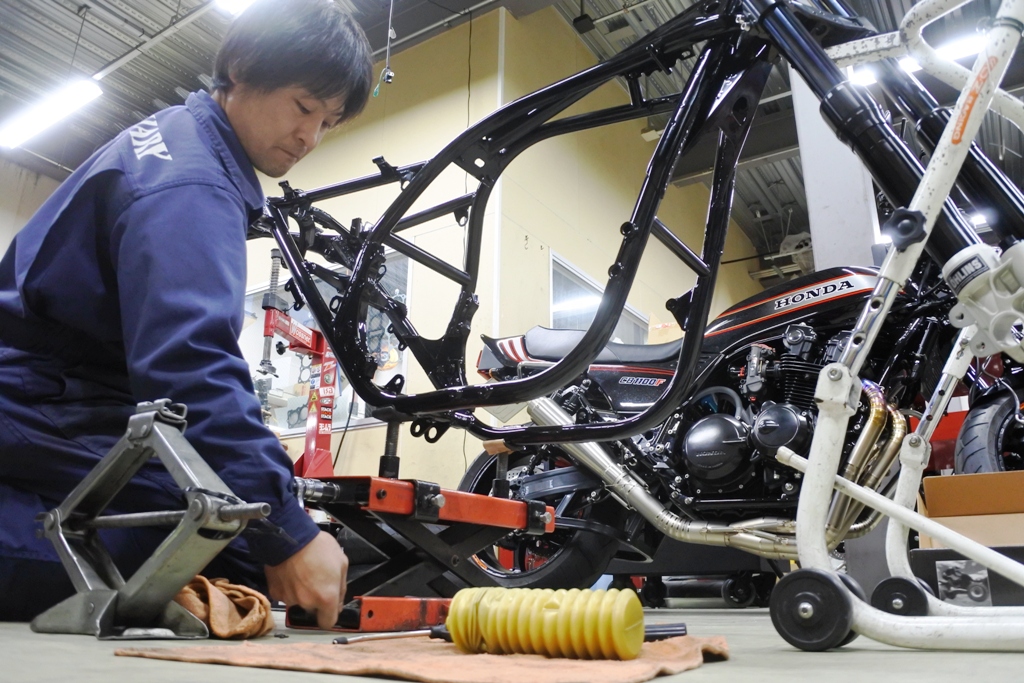 ひと足早くフレームが戻って参りましたので、早速 車体の立ち上げに・・・