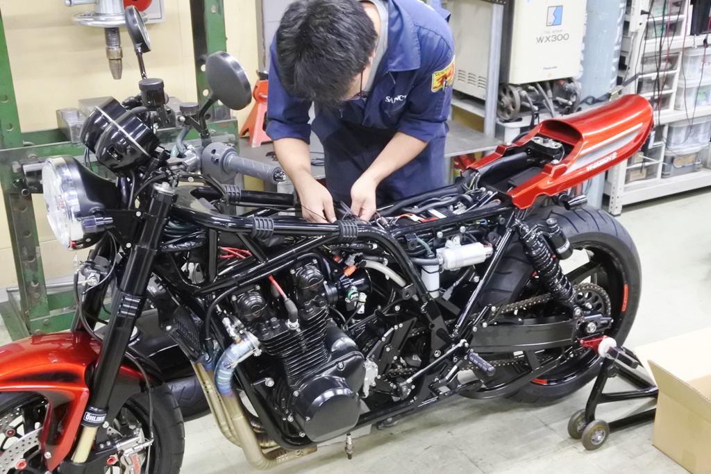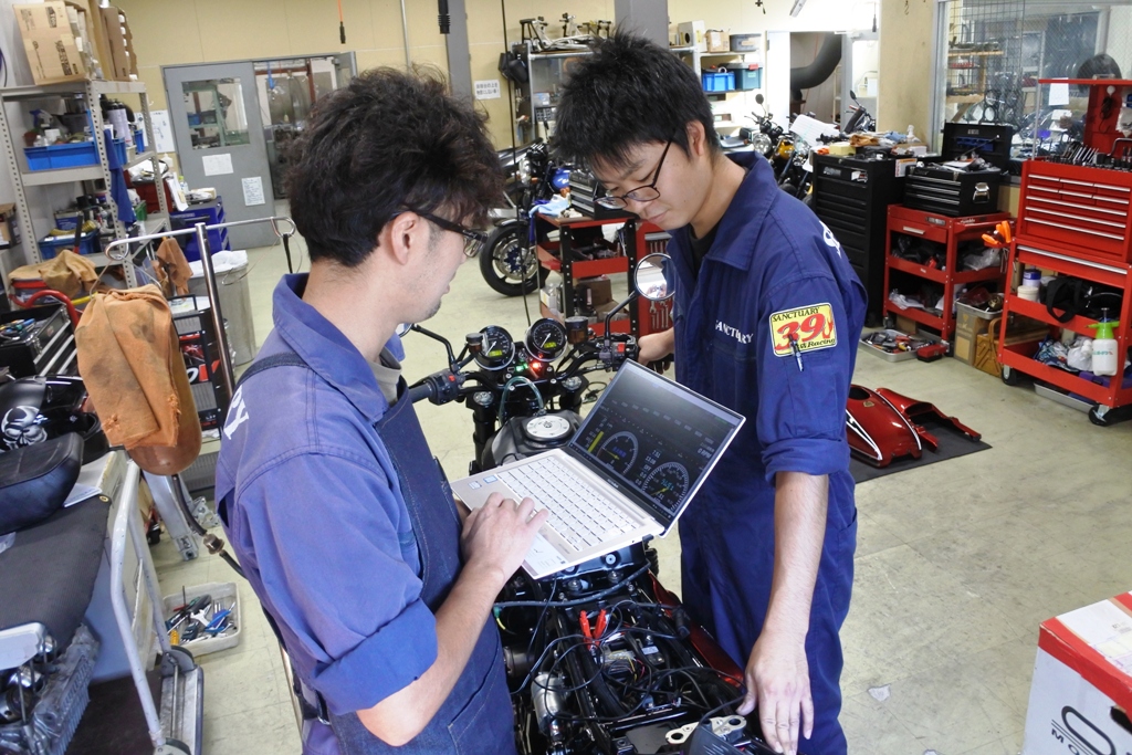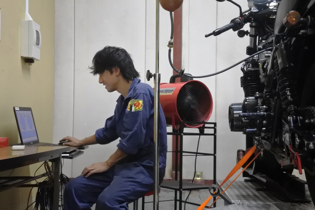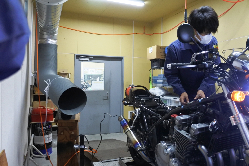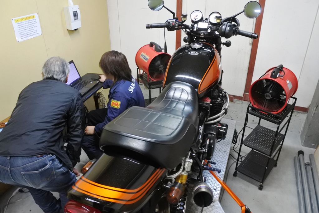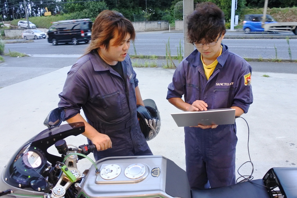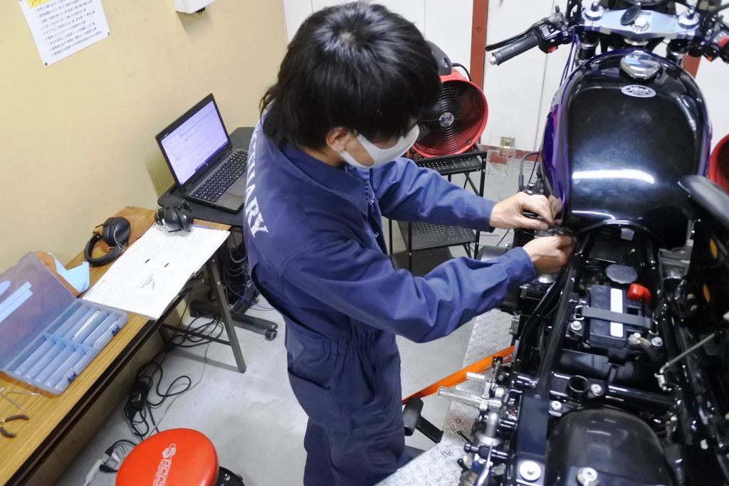 自ずとこのマシンも燃調が必要で、湯浅も工場長から勉強しつつ 調整に臨みました。
