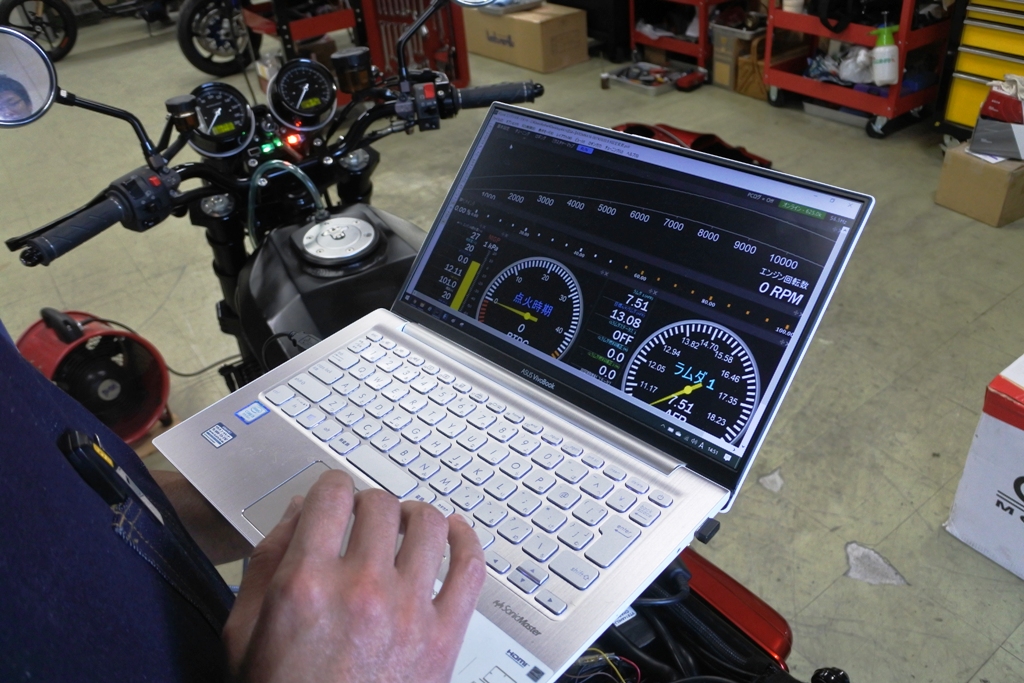 インジェクションの燃調はシャシーダイナモだけでなく、PCを繋いで実走行での
