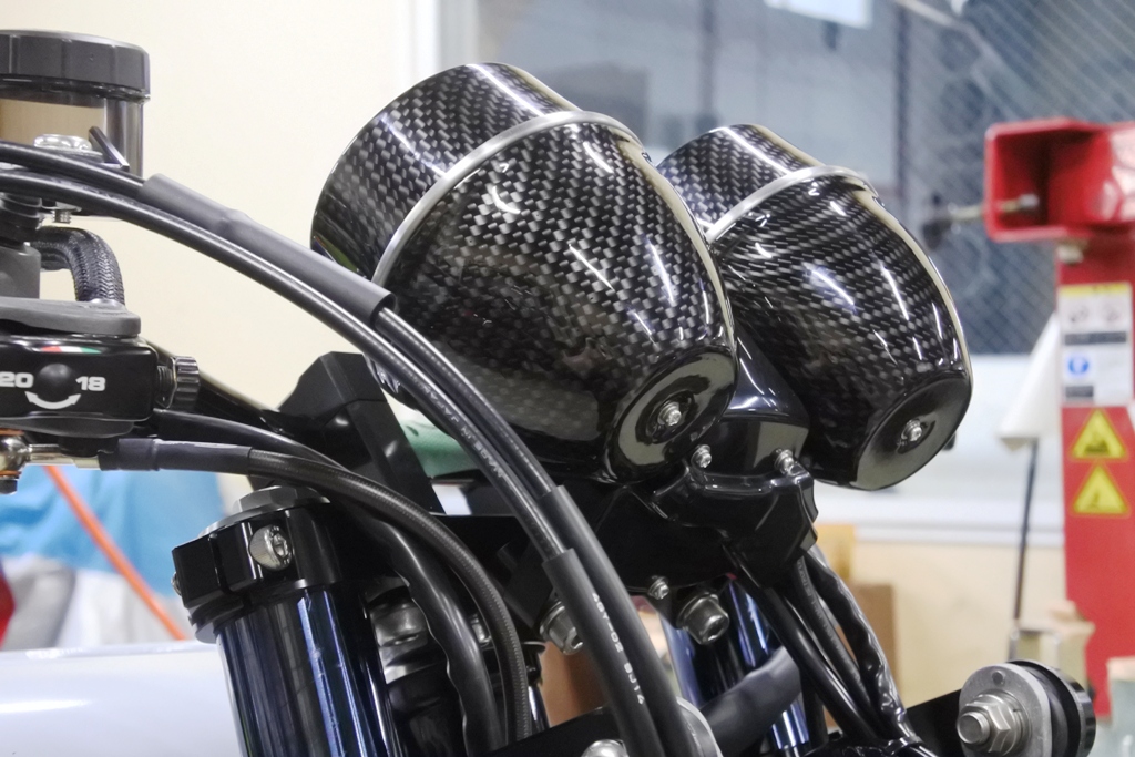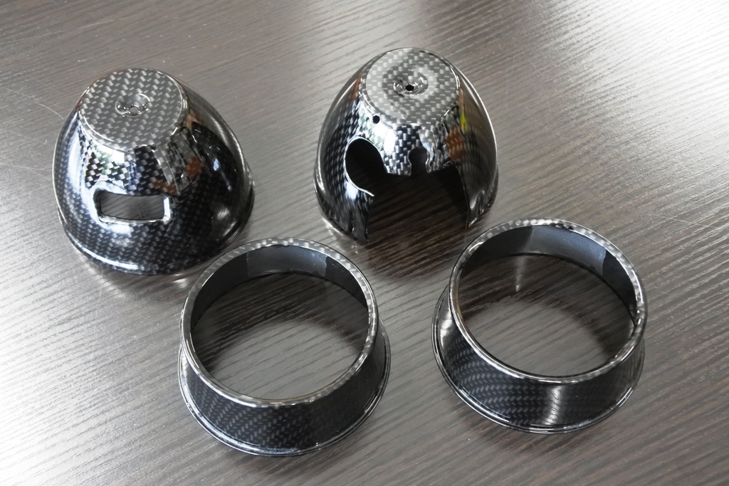 現在ヘッドライトケースやウインカーボディ等もカーボン転写加工が進んでおり