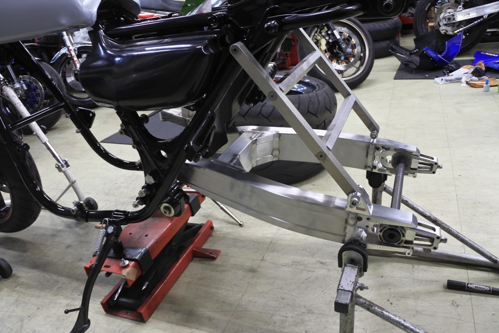 となれば当然の事ながら、スイングアームのスタビライザーも施工されます。