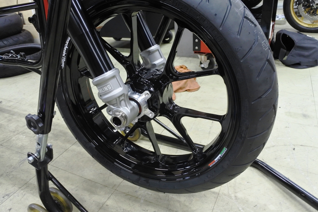 今回ホイールは、久々にイタリア マルケ〇ーニ製を使用。