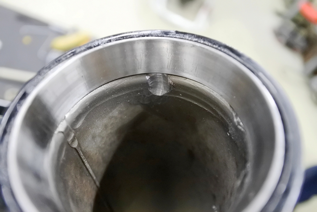 テーパーローラー式 ステムベアリングのレースを圧入する前に、リューターで