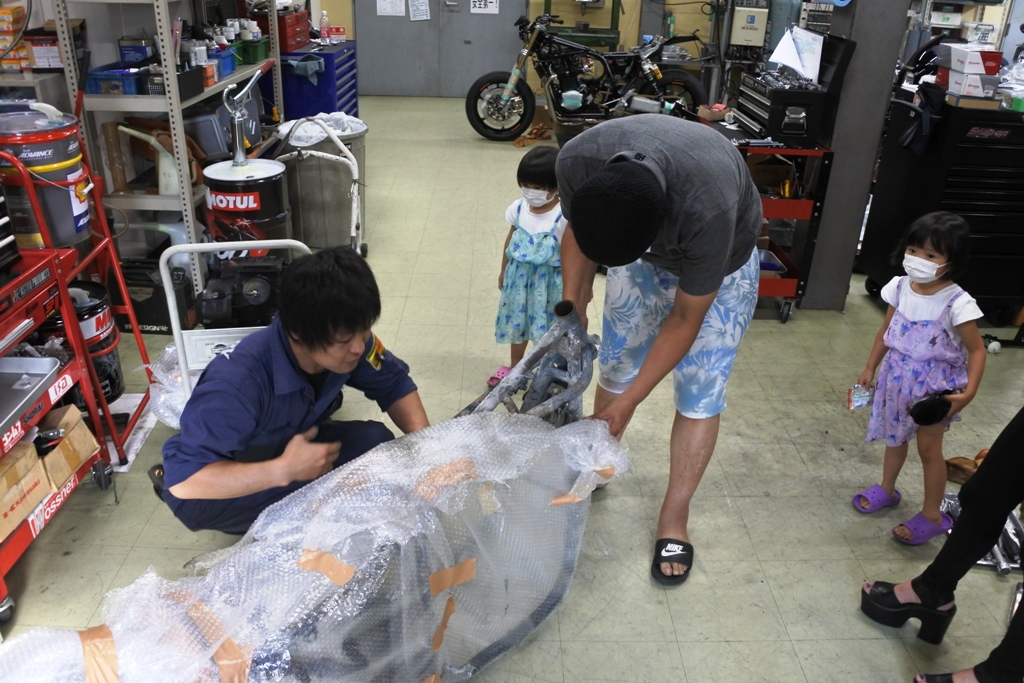 燃えてしまったZ1‐RⅡをご自分で分解され、陸送で運ばれて来たんです。