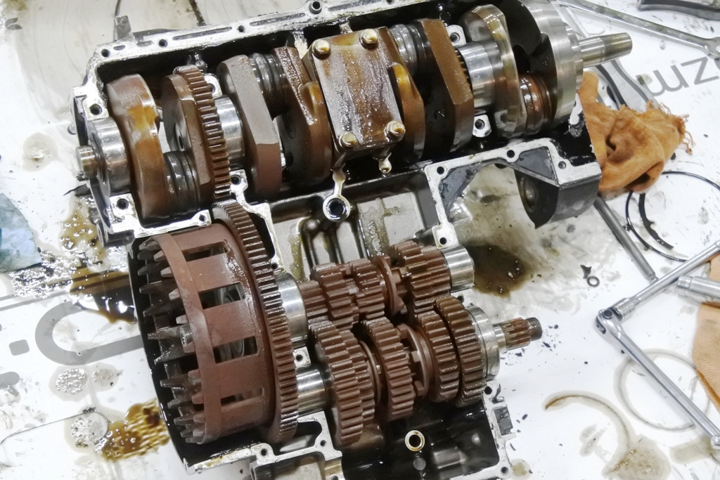 クランクケースを割ると、スチールパーツ系の殆どにサビが回っていました。