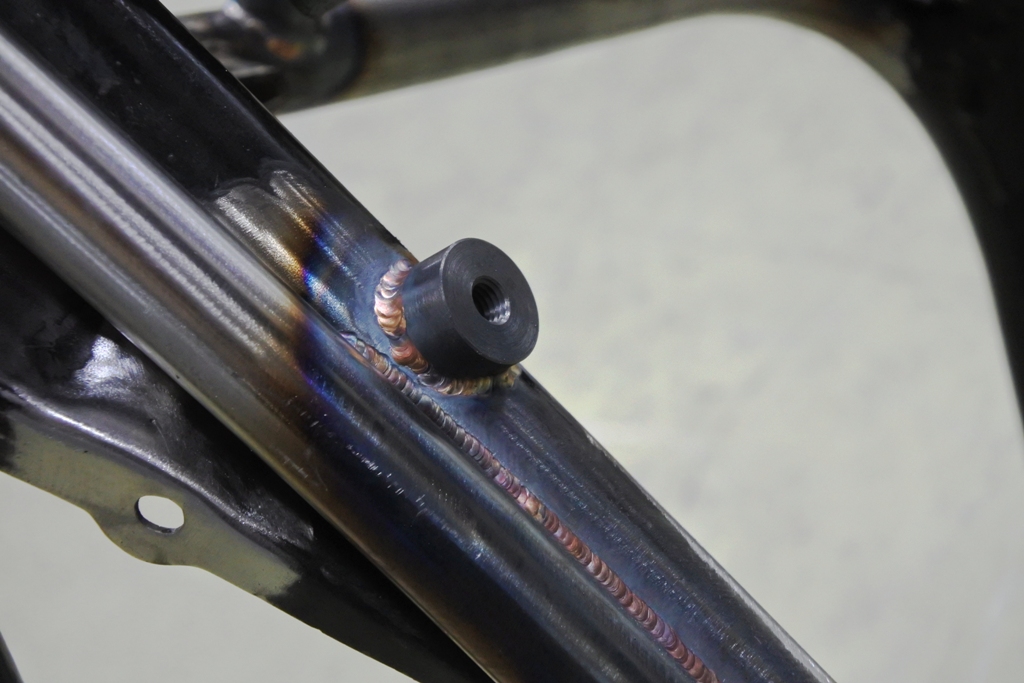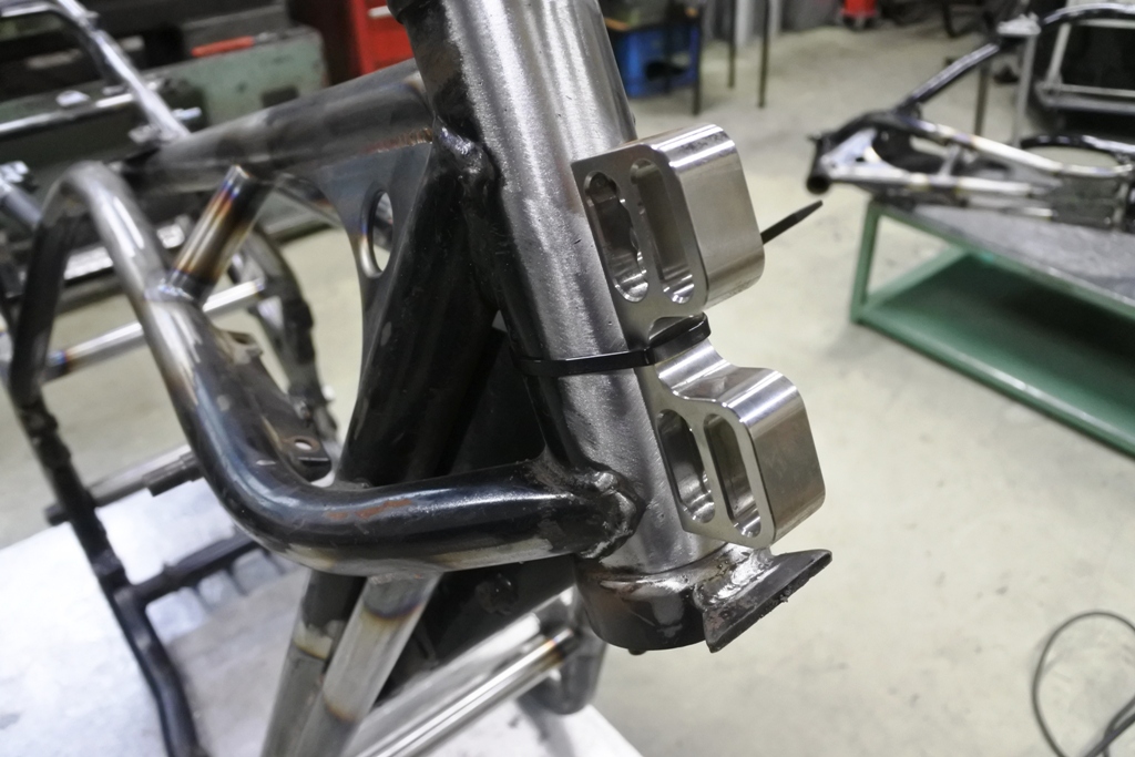 取り付ける為、カウルステーのマウントブラケットをヘッドパイプに溶接して