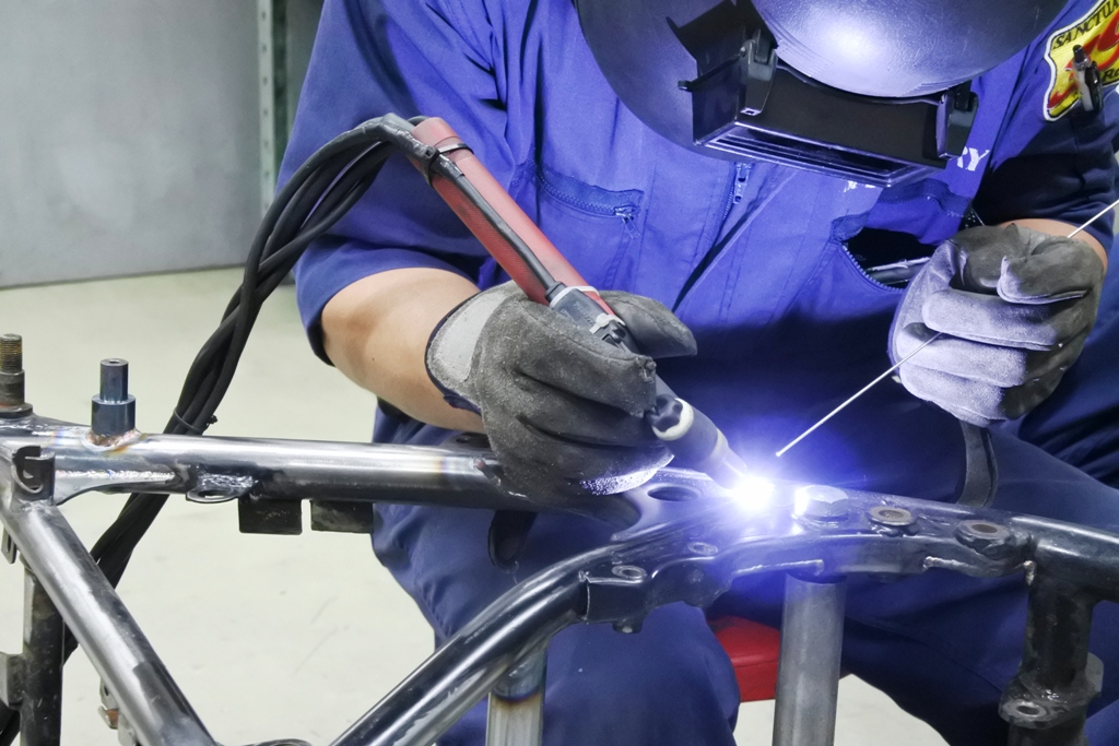 何を溶接しているかと言うと、これもアッパーカウルステーの取り付け部を