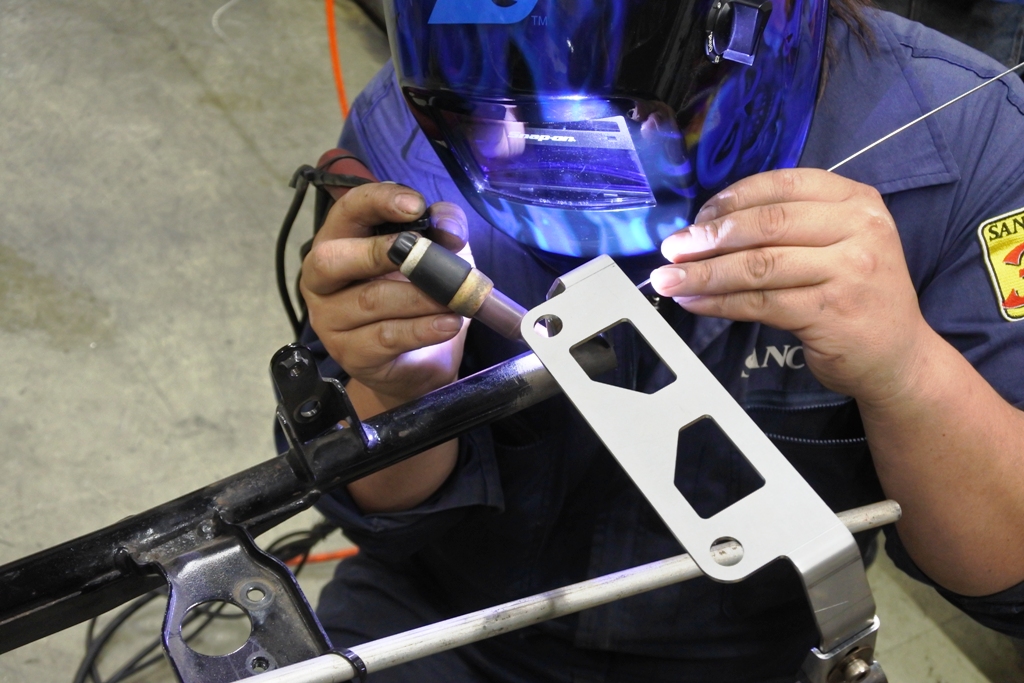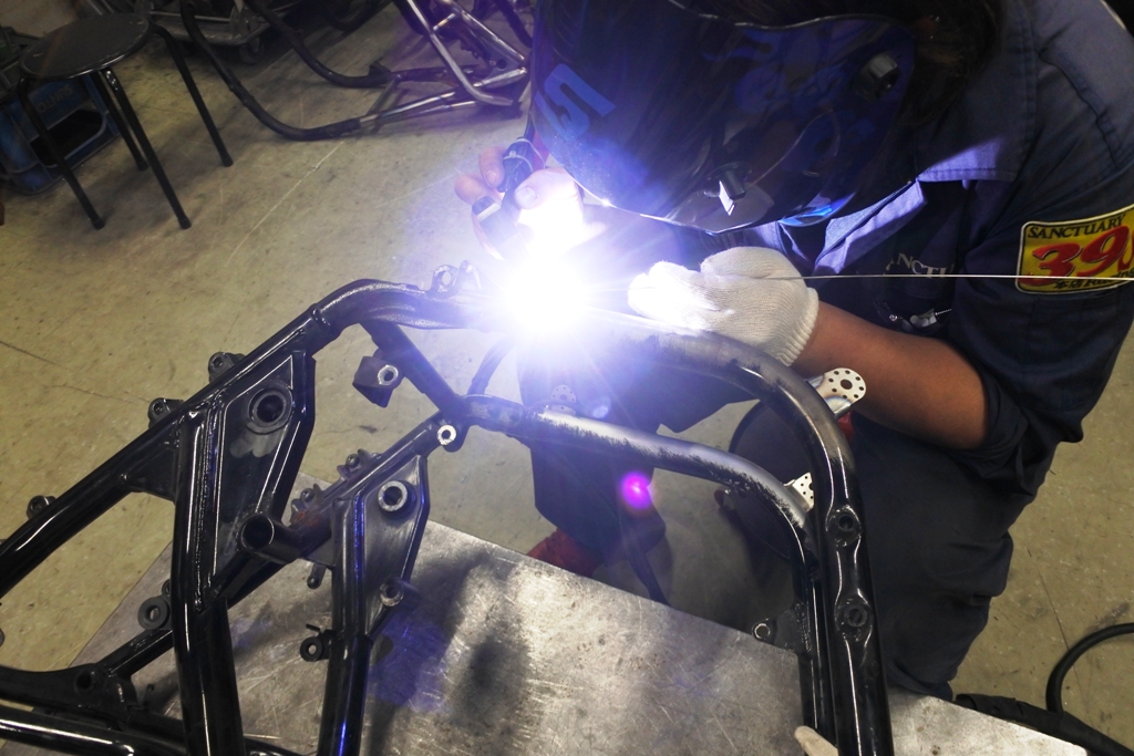 左のダウンチューブはスチール製なので 直流での溶接ですね。