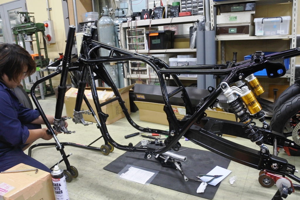 フレームをしっかり造り込むには、専用治具の使用をはじめ 溶接板金加工の技量が