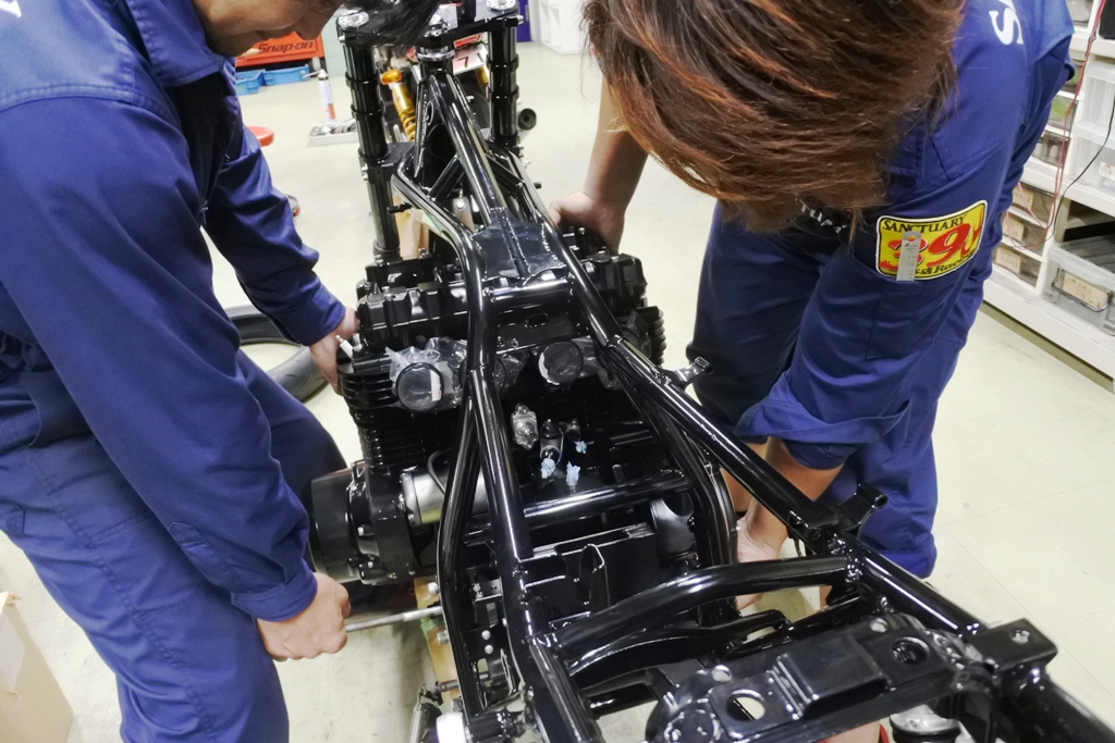 パウダーコーティングされ戻って来たフレームには、サンクチュアリーオリジナル
