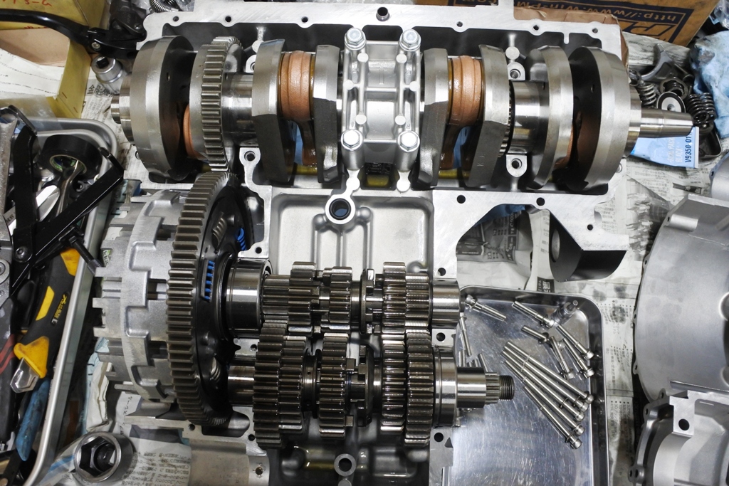 収まり、これよりエンジン腰下組み立てに入るところ。