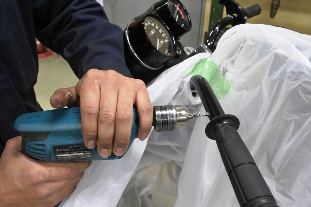 ハンドルスイッチの回り留め、穴あけを施します・・・