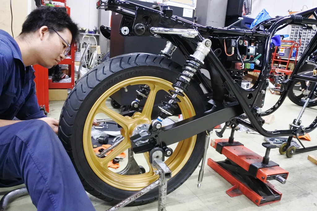 同時進行にする事でスイングアームの表面処理待ち期間がなくなりますから
