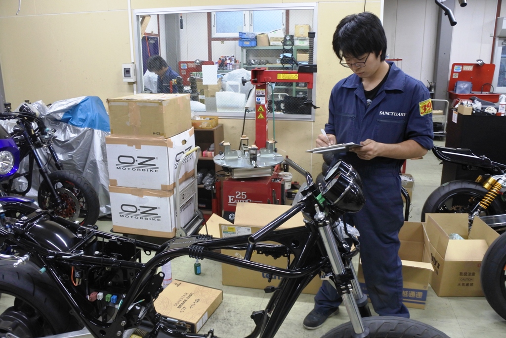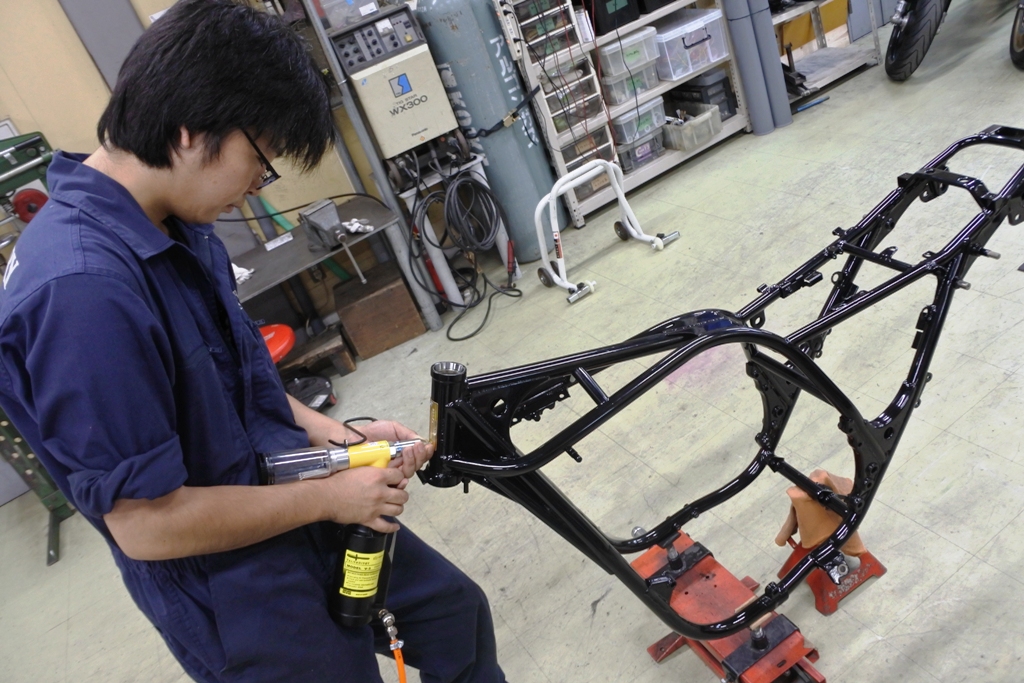 この後フレームとスイングアームは一緒に梱包されて コーティング工程へと送られ