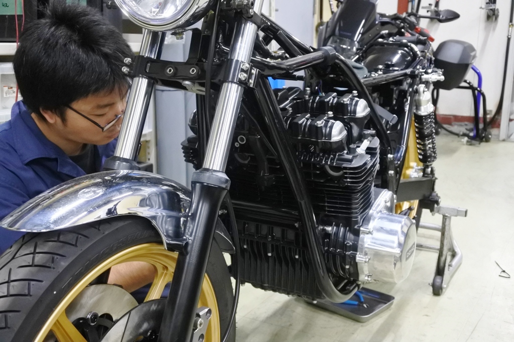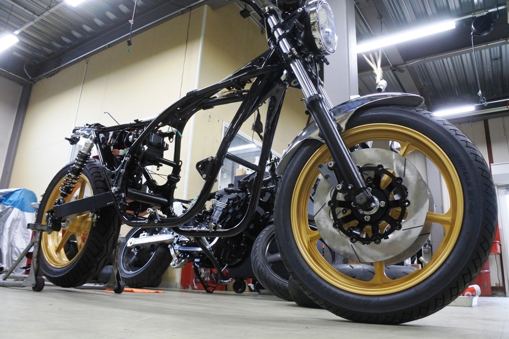 SCULPTURE製φ38ステムKITにKYBフォークを装備し、リア回りにも