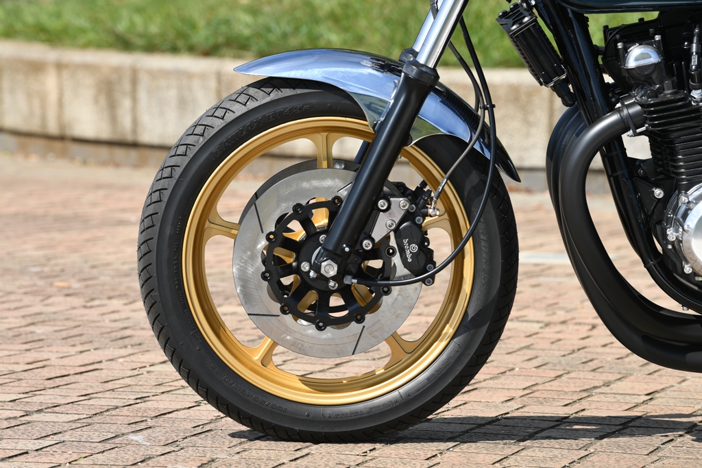 フォークにSUNSTAR製 MK‐Ⅱ用ディスク。Brembo製キャスティング