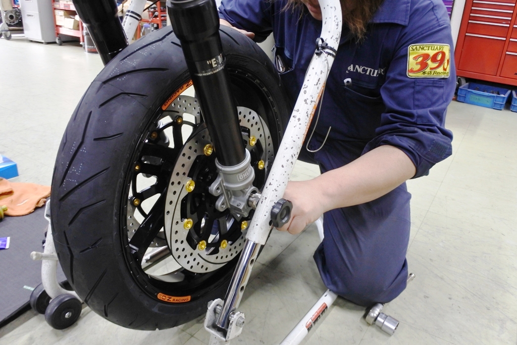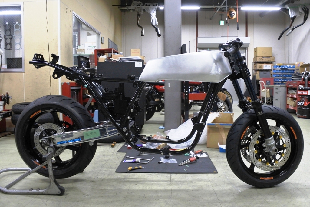 スイングアームの代わりに転がし用のア-ムを仮組みして リアは暫定・・・