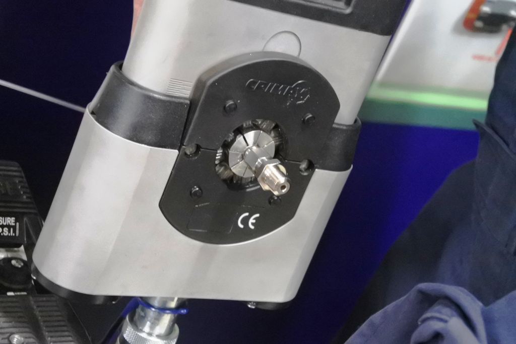 ショルトシステムのホースエンドをフィッティングクランパーで鉸めました。