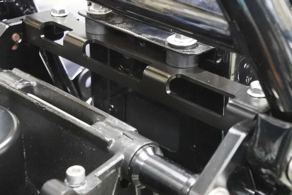 エンジンハンガーとバッテリーケースを繋げる形で固定するブラケットですが