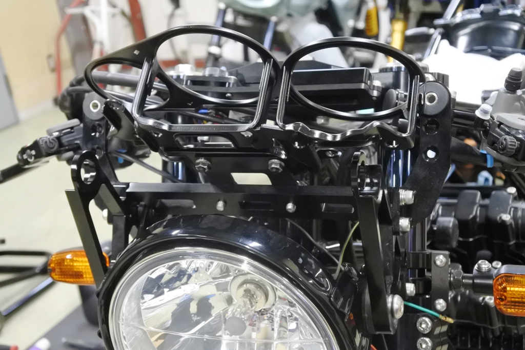 メーターの取り付けブラケットはワンオフで製作しましたが、メーター本体は