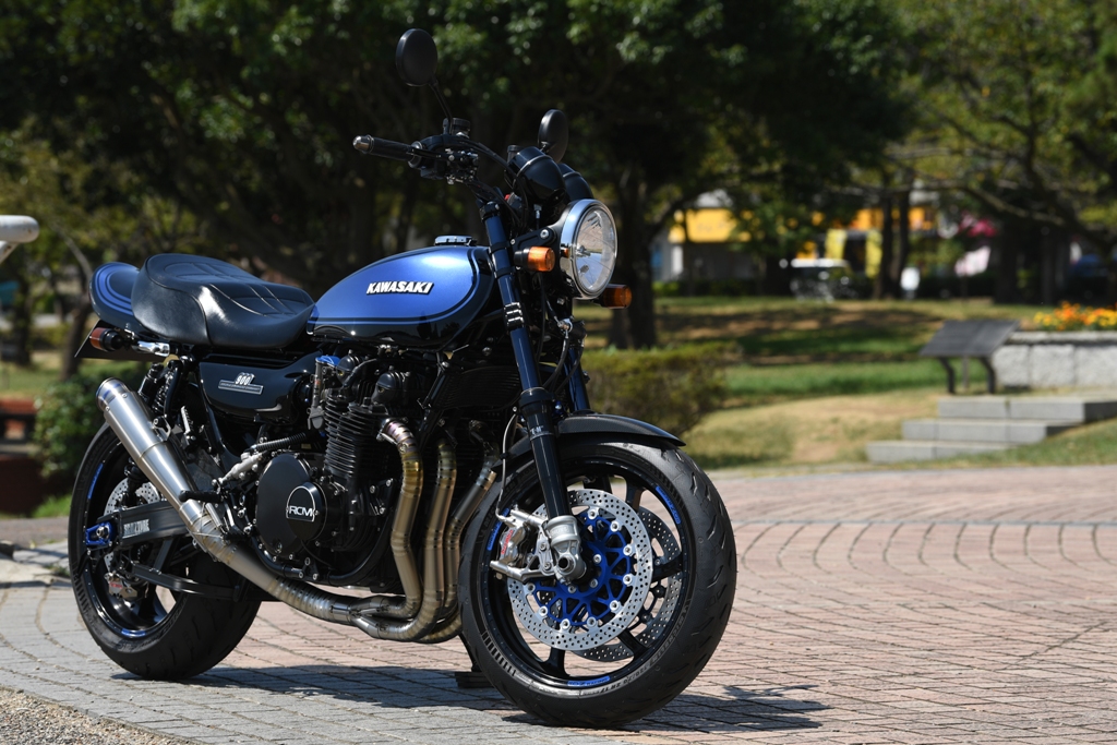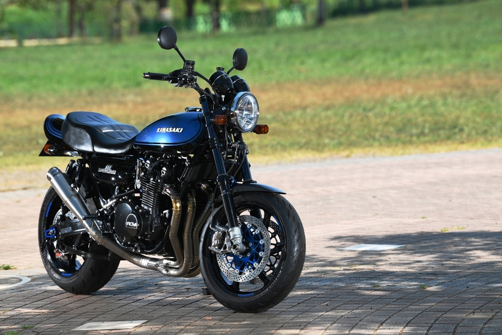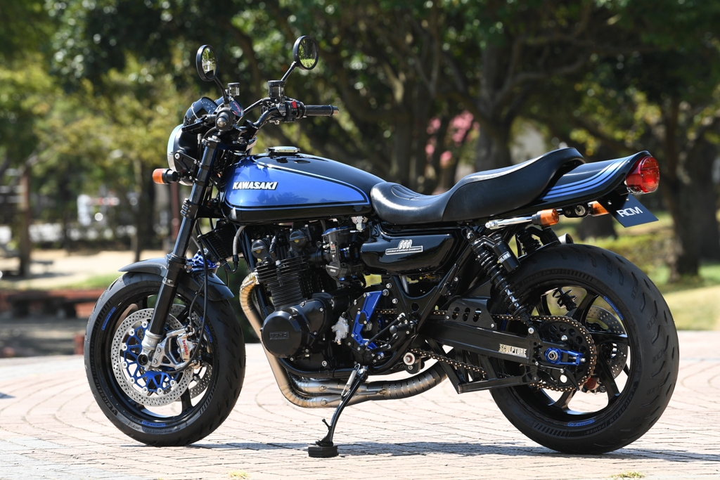 ブラックとブルーのツートンカラーは、大昔に中村が乗っていたZ400FX