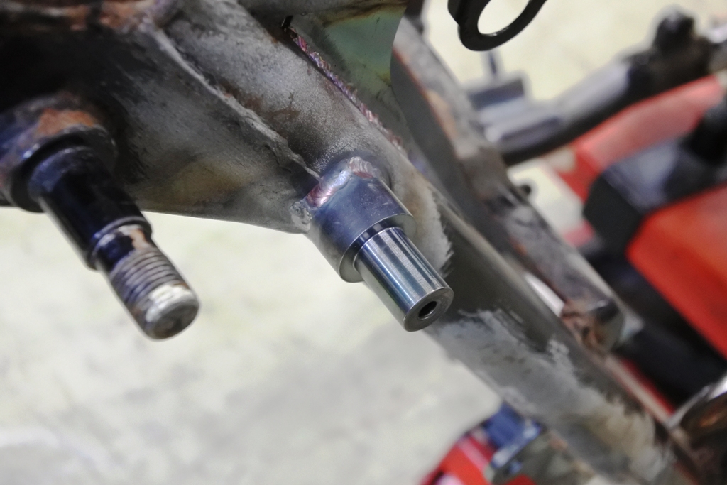 下穴を開けてブッシュを貫通させ、しっかり溶接で固定するのが原則・・・