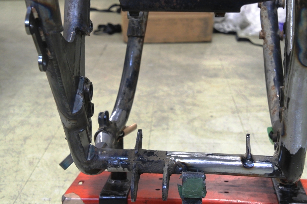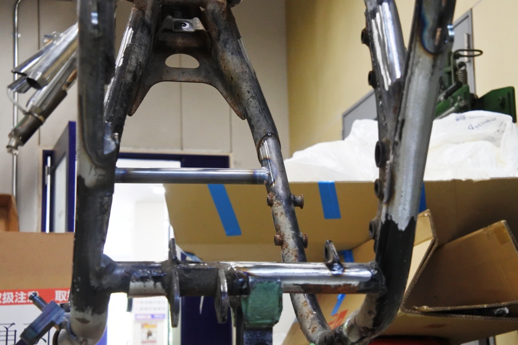 センタースタンドの取り付けブラケット部は、右側のみを切除・・・