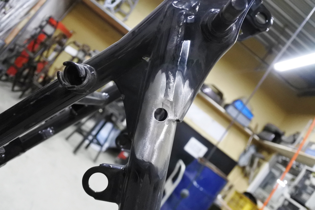 施されており、画像ではバスッと切られていますがヘッドパイプ下に入っていた