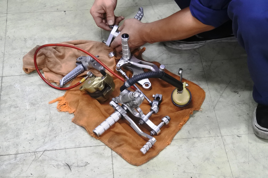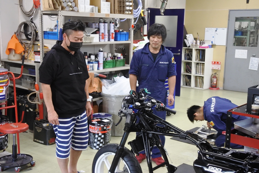 ホイールがパウダーコーティング工程へ行っている間 車体を少しでも進めるべく