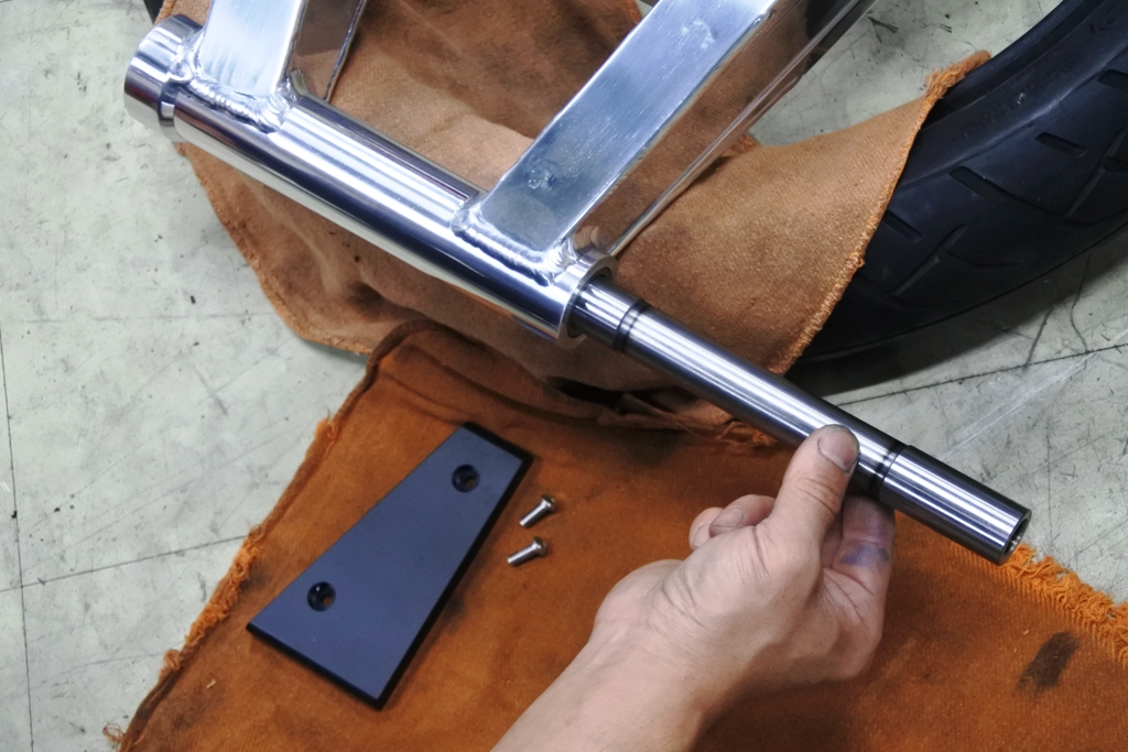 まずは磨き上がったばかりのスイングアームに新品ベアリングを圧入します。