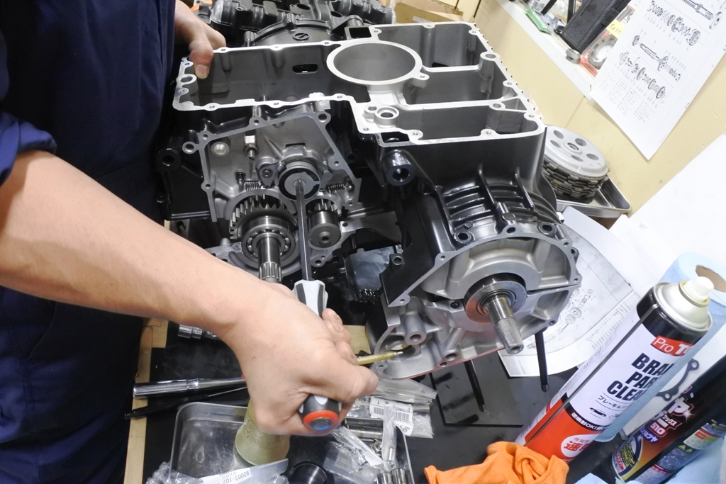 クランクケースを合わせては 作動確認・・・ 微調整・・・ それの繰り返し。