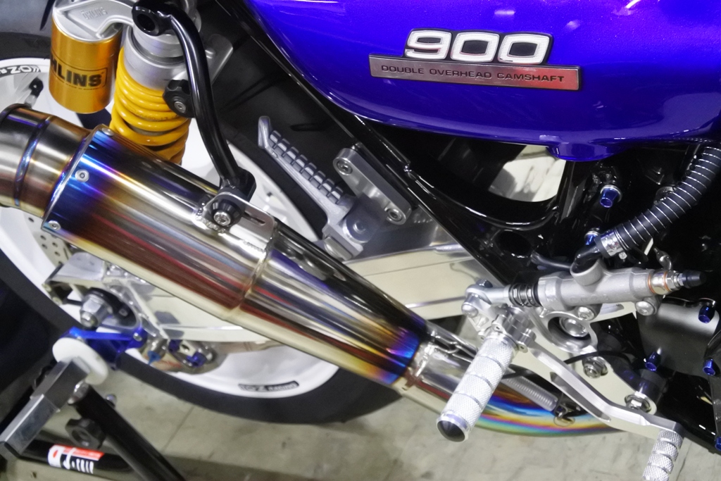 ポリッシュ仕上げのスイングアームにシルバーアルマイト仕様のステップKITと