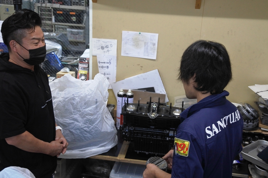 丁度エンジンが組み立ての途中だったので、見て貰いながら話す事に・・・