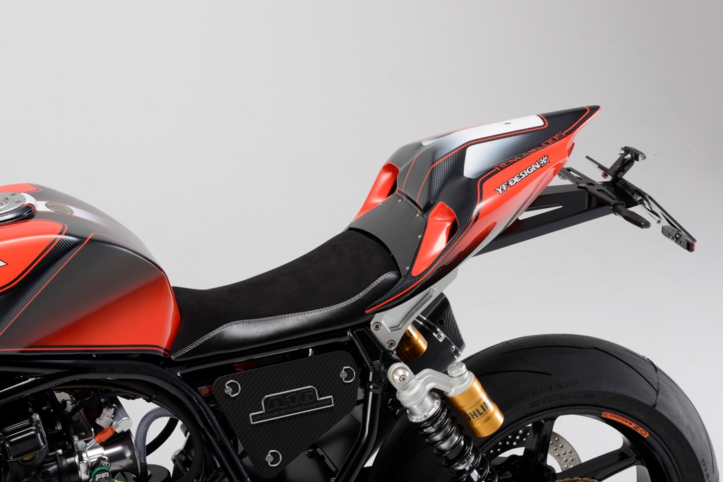 シャープにテールアップされたSS風シートカウルと これまたワンオフをした