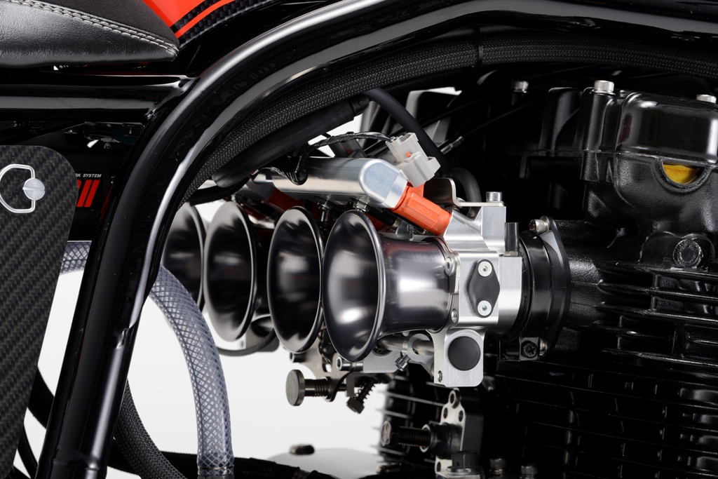 ひと際映える総削り出し製のフューエルインジェクション スロットルボディは