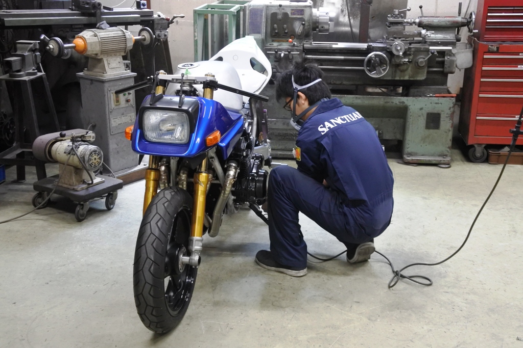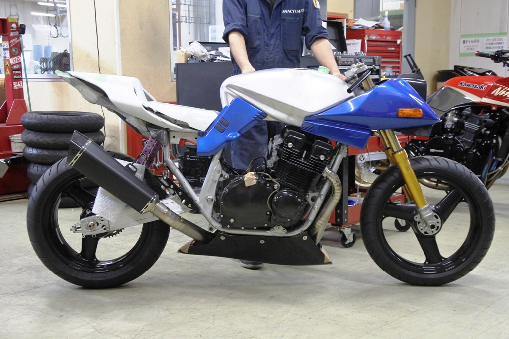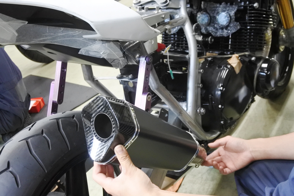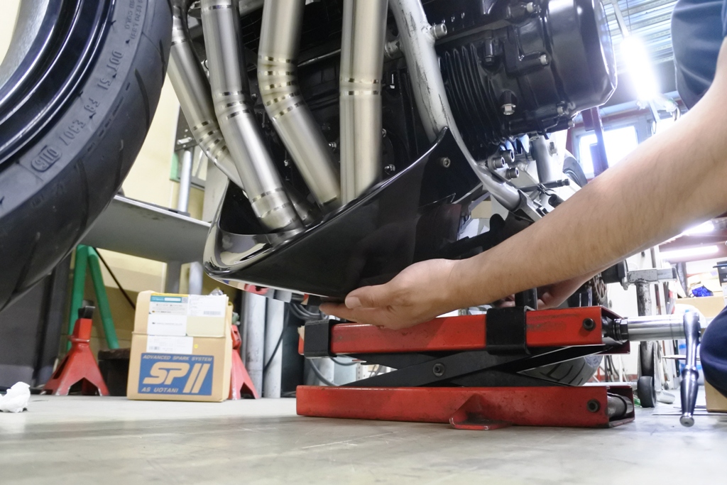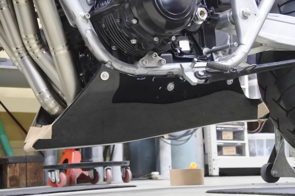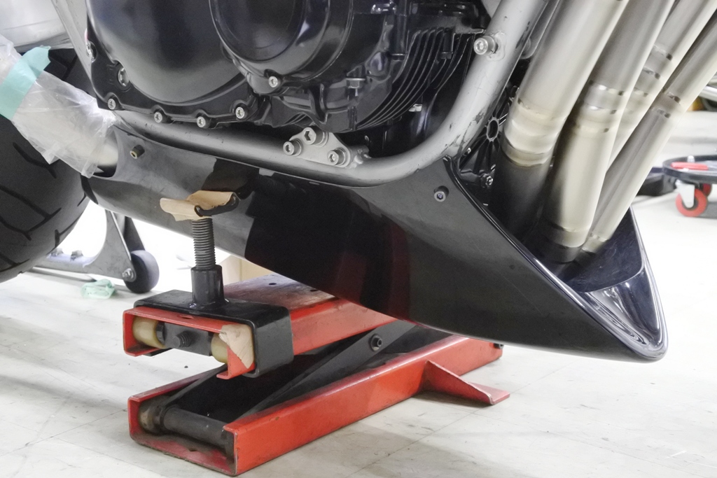 アンダーカウルにはナイトロレーシング製のカワサキZ用を加工して取り付けます。