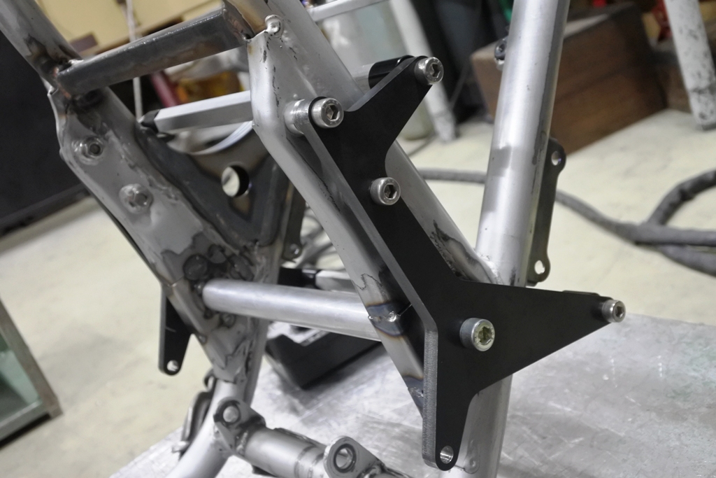 スイングアームピボット部を7mmローダウンさせる為の加工です。