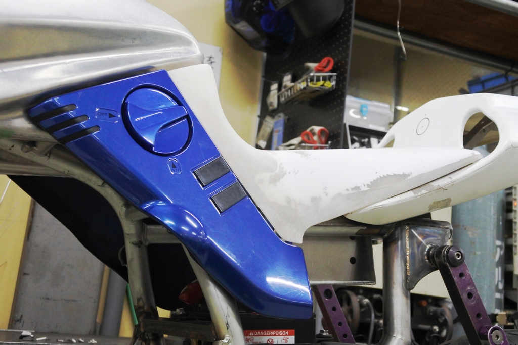シングルシートやアンダーカウルなど、外装パーツのフィッティング加工が