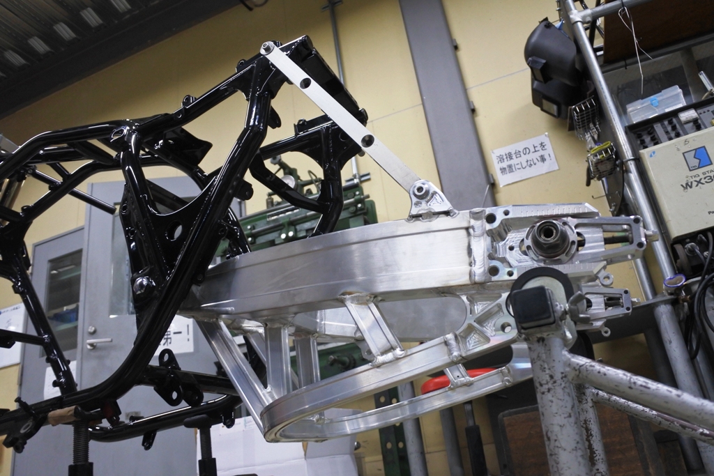 ここでリアスイングアームの最終検証を行うべく 一端仮り組みしました。